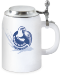 Keramikkrug mit 3 Goldlinien und Zinndeckel